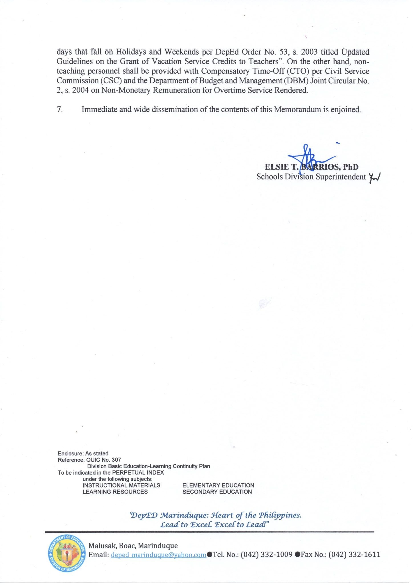 Division Memorandum [UnNumbered]