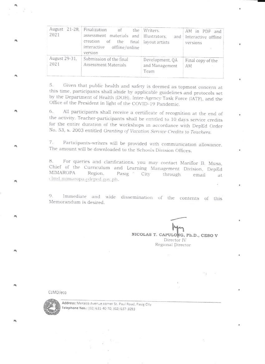 Jul 02, 2021 ADDITIONAL INFORMATION ON THE CONDUCT OF READING CAMP (BRIGADA PABASA) AND CULMINATING ACTIVITY-PANDEMIC EDITION