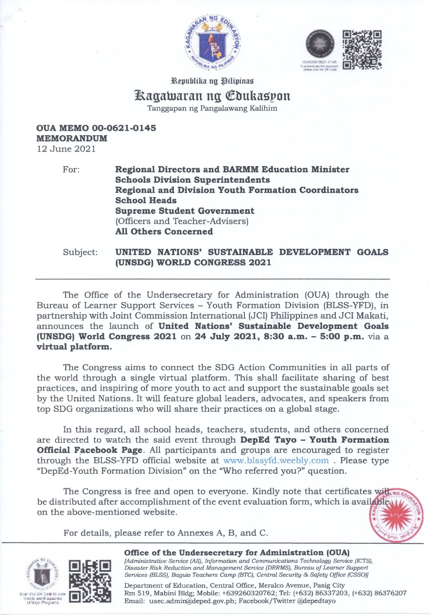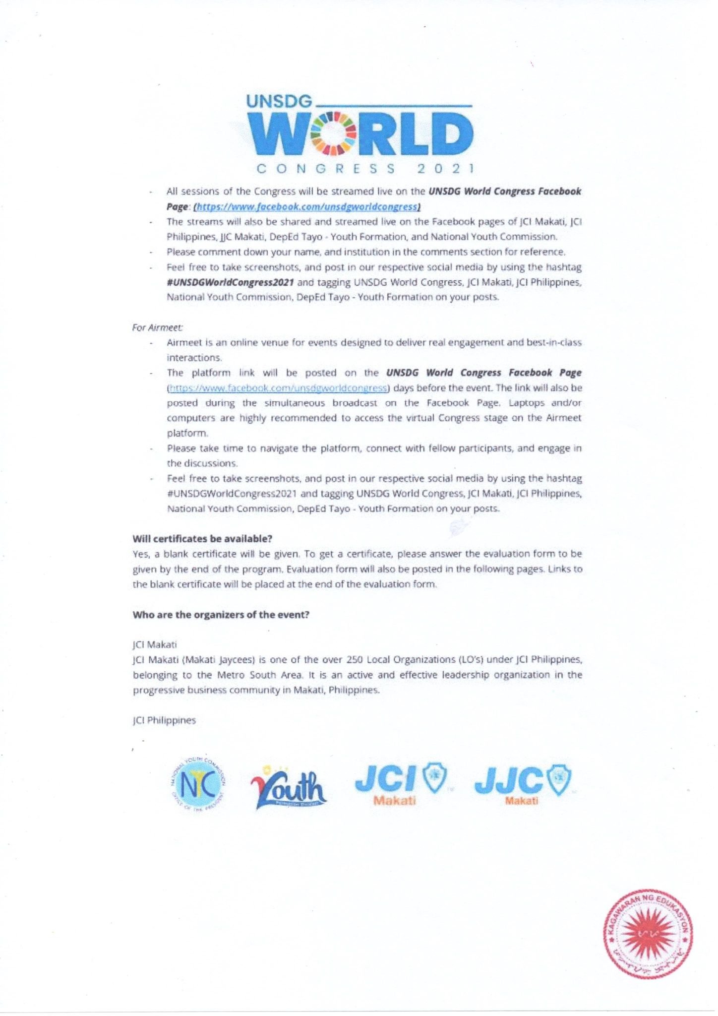 Jun 24, 2021 UNITED NATIONS SUSTAINABLE DEVELOPMENT GOALS (UNSDG) WORLD CONGRESS 2021
