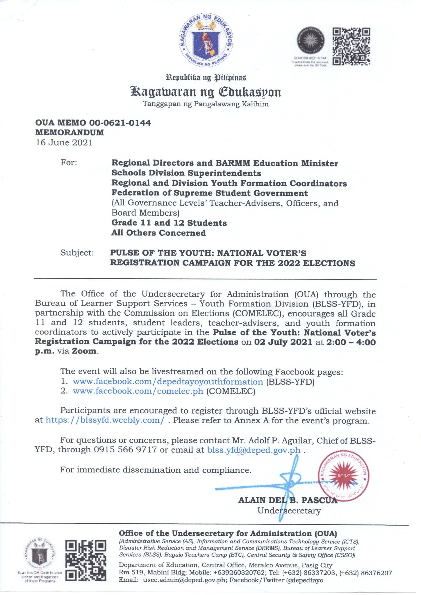 Jun 24, 2021 PULSE OF THE YOUTH: NATIONAL VOTERS REGISTRATION CAMPAIGN FOR THE 2022 ELECTIONS