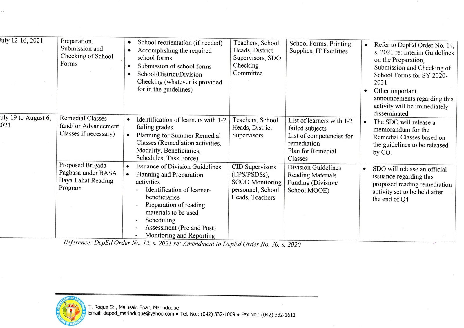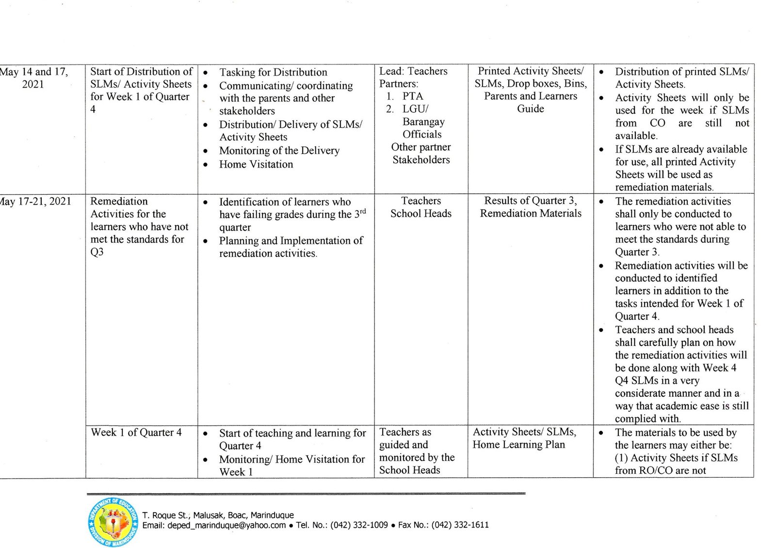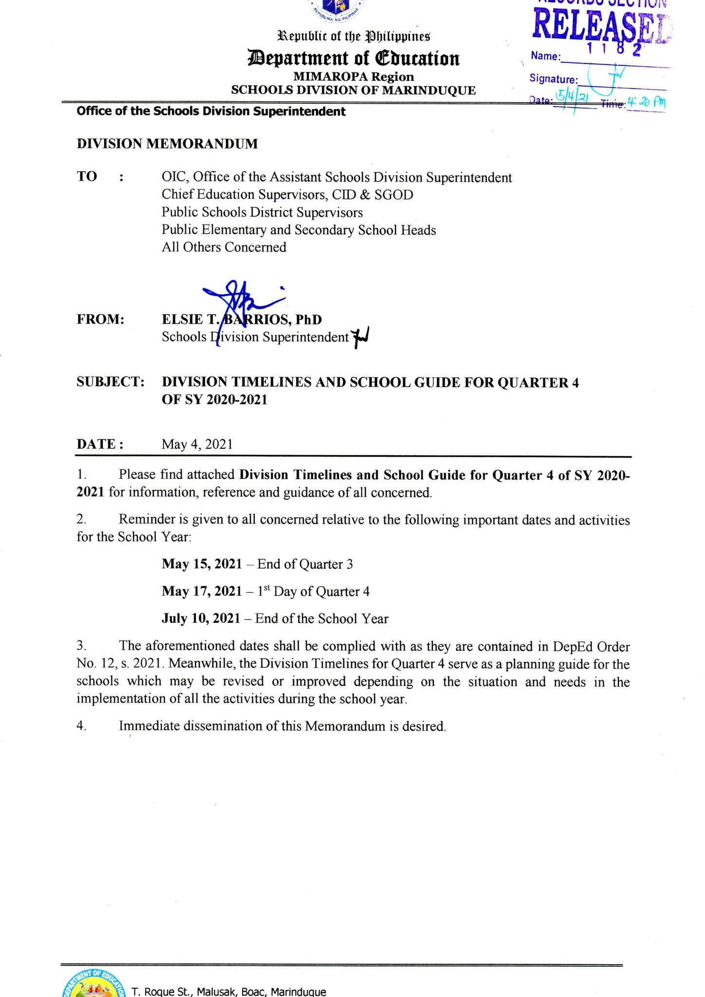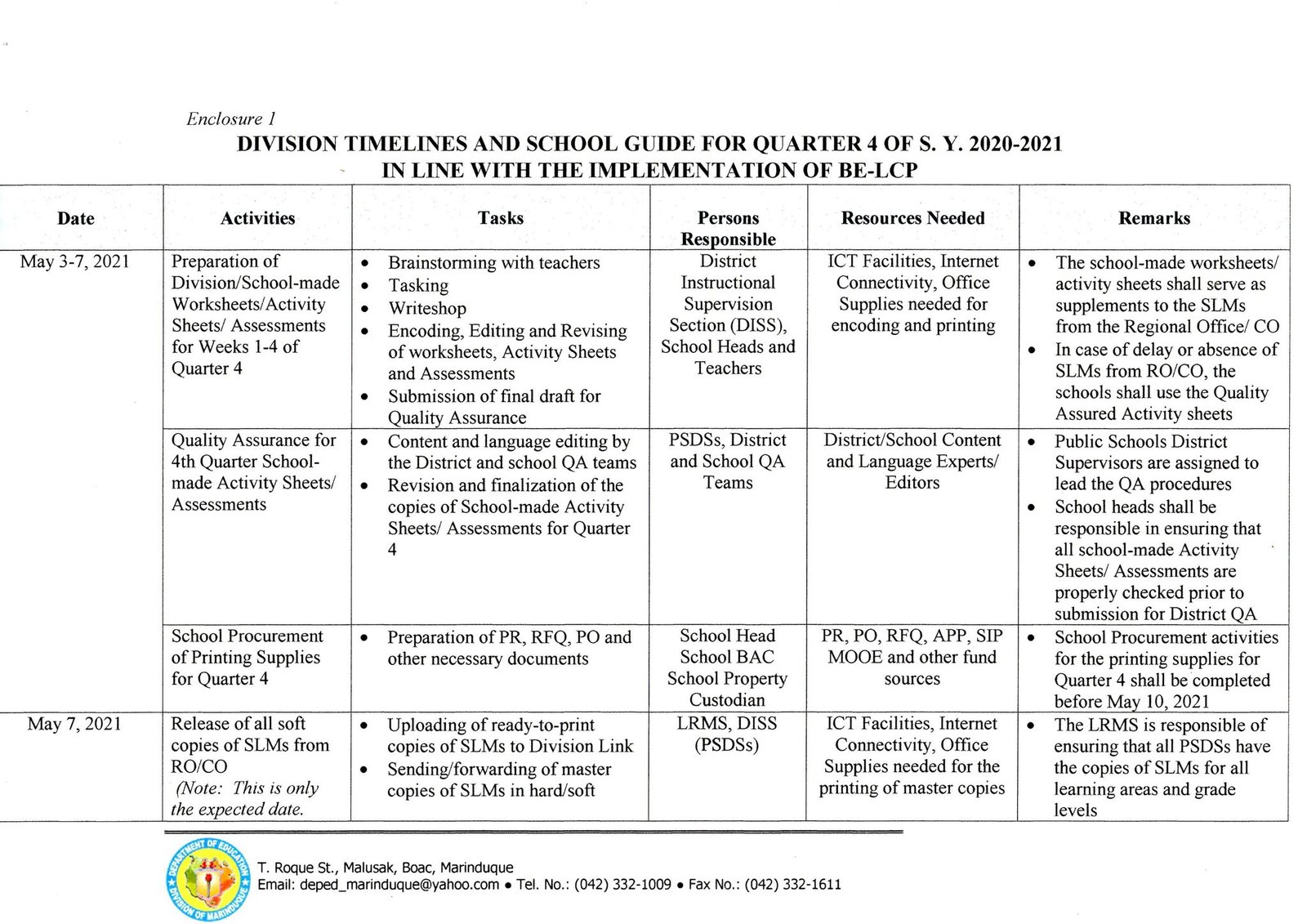 May 05, 2021 Division Timelines and School Guide for Quarter 4 of SY 2020-2021