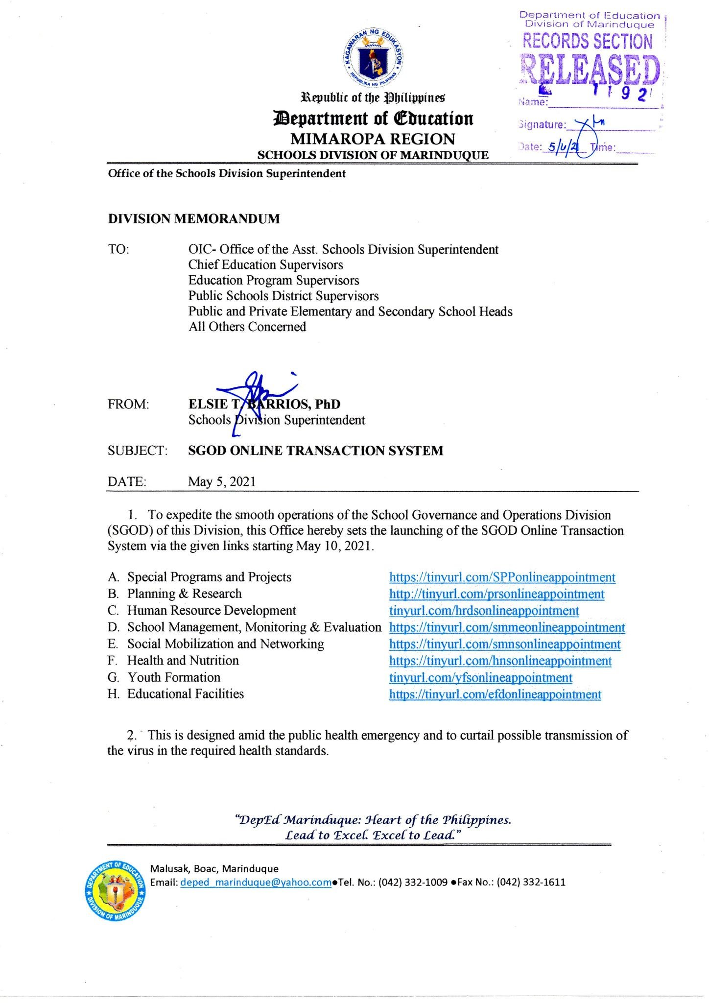 May 04, 2021 CLARIFICATIONS AND ADDITIONAL INFORMATION TO DIVISION MEMORANDUM NO. 19, S. 2021 RE: DIVISION VIRTUAL ORIENTATION ON PROCUREMENT AND DELIVERY PROCESSES